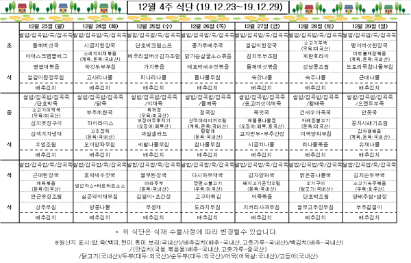 "금주의 식단 메뉴를 확인 할 수 있습니다."