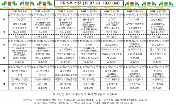 "금주의 식단 메뉴를 확인 할 수 있습니다."