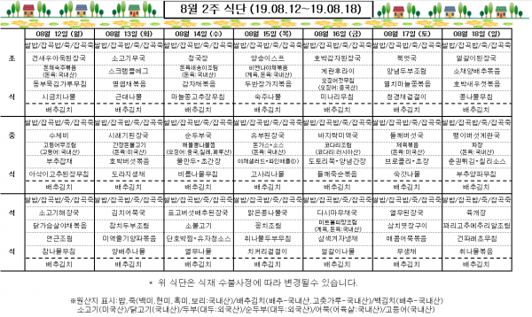 8월 2주 식단표