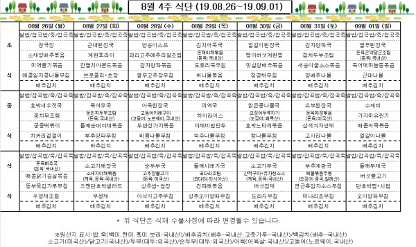 8월 4주 식단표