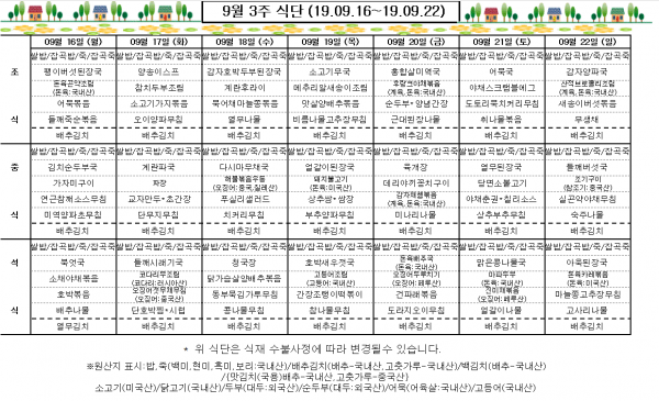 "금주의 식단 메뉴를 확인 할 수 있습니다."