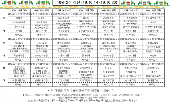 10월 2주 식단표