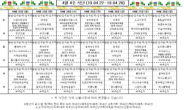 "금주의 식단 메뉴를 확인 할 수 있습니다."
