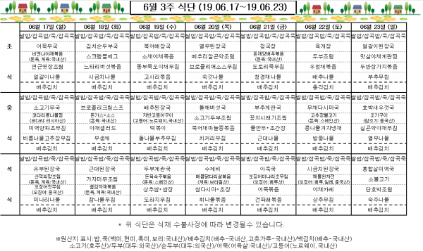 6월 3주 식단표