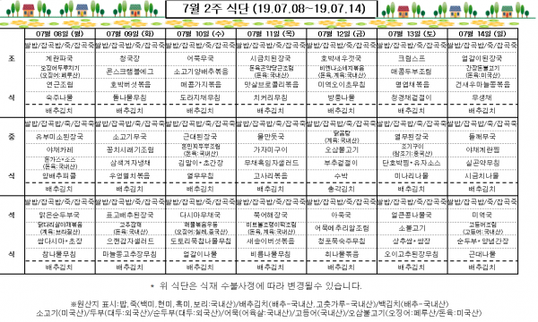 7월 2주 식단표