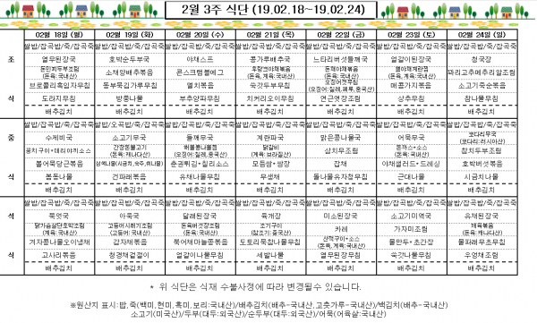 2월 3주 식단표