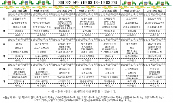 3월 3주 식단표