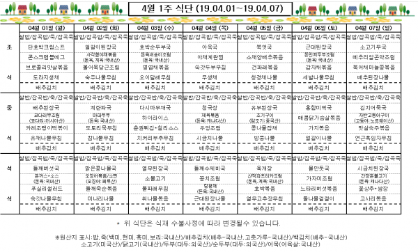 4월 1주 식단표