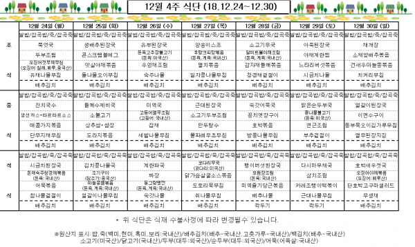 "금주의 식단 메뉴를 확인 할 수 있습니다."
