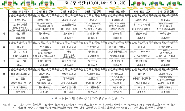1월 2주 식단표