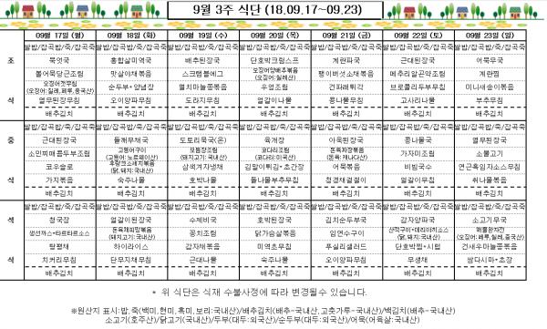 9월 3주 식단표