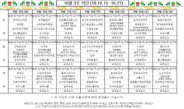 10월 3주 식단표