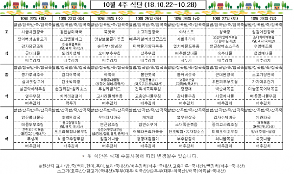 10월 4주 식단표