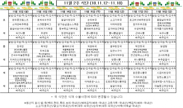 11월 2주 식단표