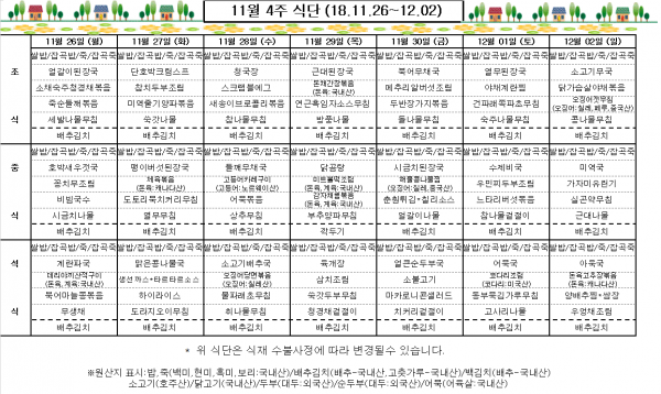 "금주의 식단 메뉴를 확인 할 수 있습니다."