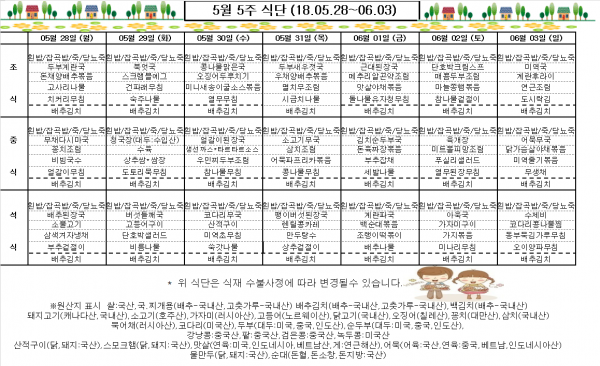 5월 5주 식단표
