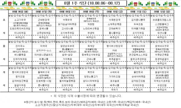 "금주의 식단 메뉴를 확인 할 수 있습니다."