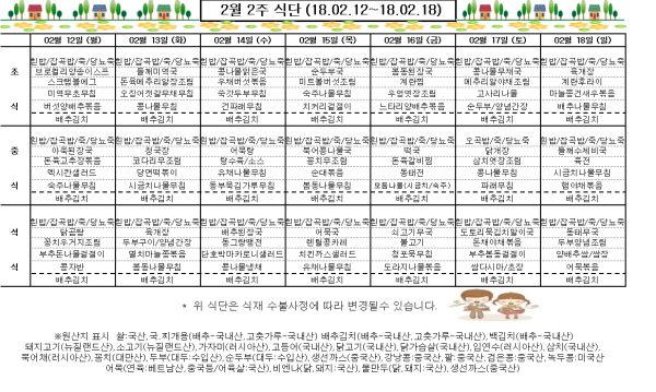 2월2주 식단표