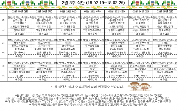 "금주의 식단 메뉴를 확인 할 수 있습니다."