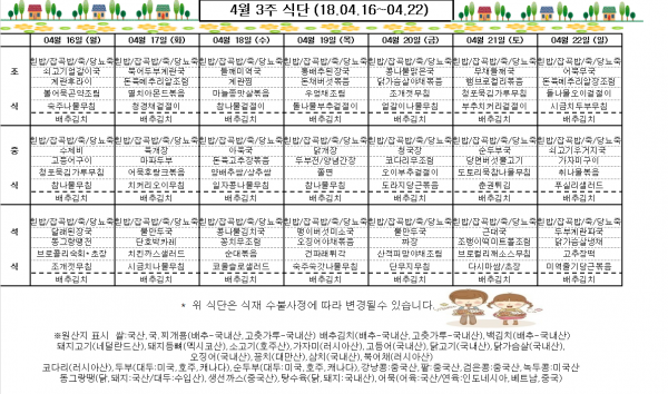 "금주의 식단 메뉴를 확인 할 수 있습니다."