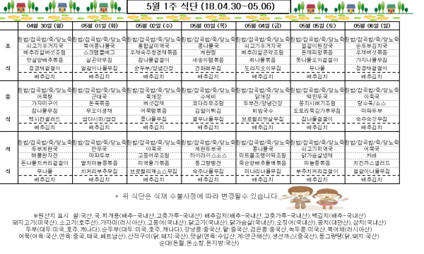 "금주의 식단 메뉴를 확인 할 수 있습니다."