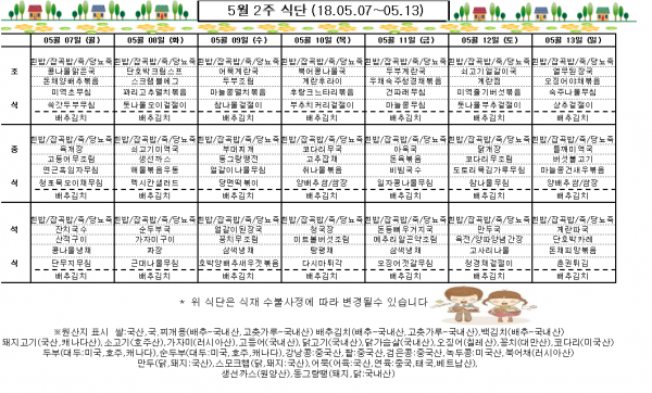 "금주의 식단 메뉴를 확인 할 수 있습니다."