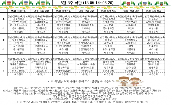 5월 3주 식단표