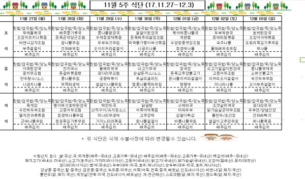 "금주의 식단 메뉴를 확인 할 수 있습니다."