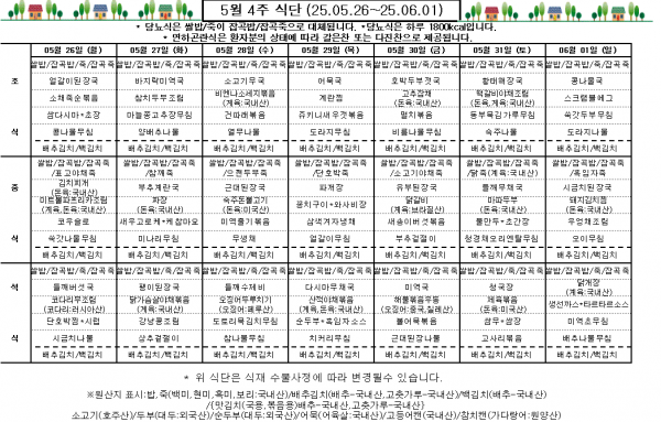 "금주의 식단 메뉴를 확인 할 수 있습니다."