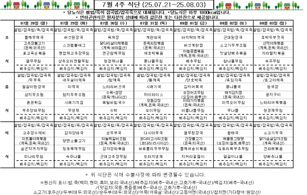 "금주의 식단 메뉴를 확인 할 수 있습니다."