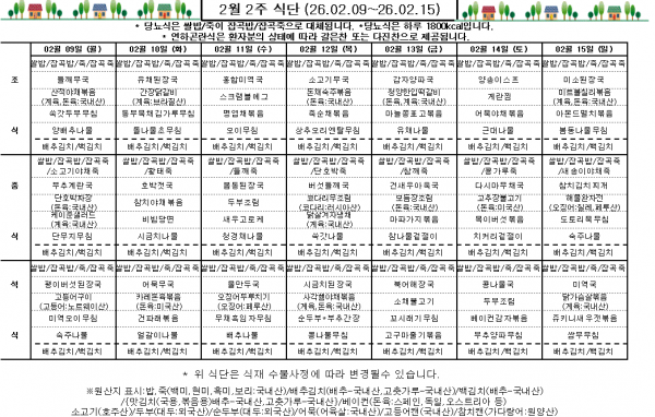 "금주의 식단 메뉴를 확인 할 수 있습니다."