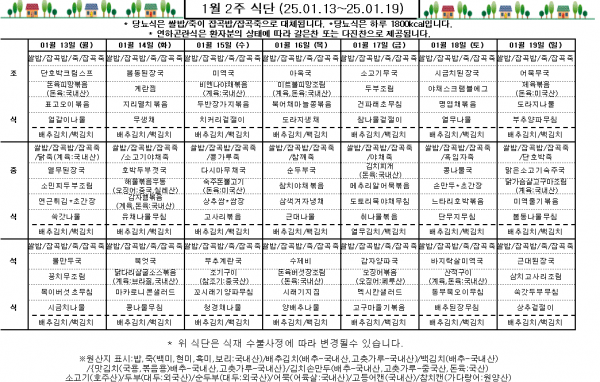 "금주의 식단 메뉴를 확인 할 수 있습니다."