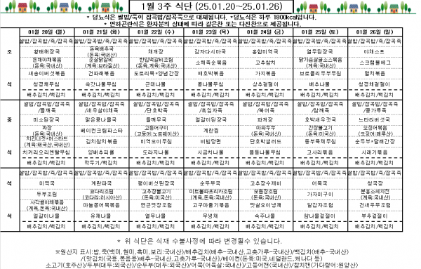 "금주의 식단 메뉴를 확인 할 수 있습니다."