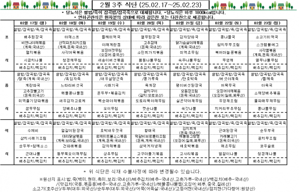 "금주의 식단 메뉴를 확인 할 수 있습니다."