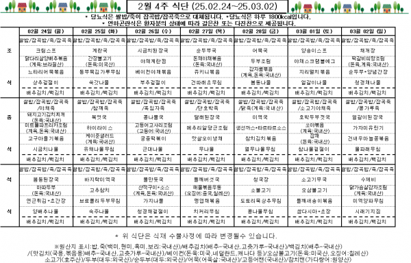 2월 4주 식단표