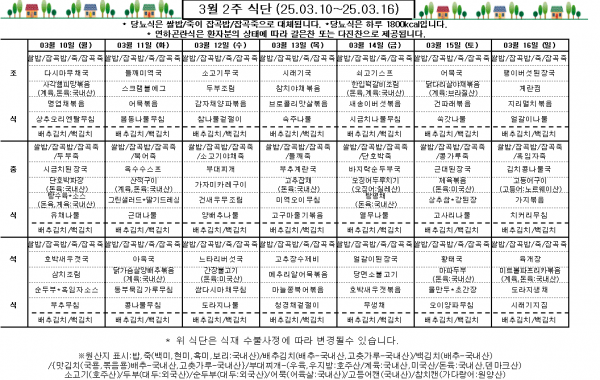 3월 2주 식단표