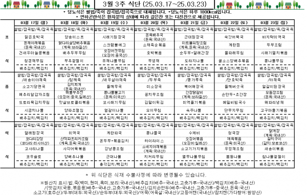 "금주의 식단 메뉴를 확인 할 수 있습니다."