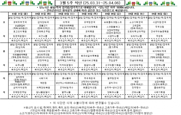 "금주의 식단 메뉴를 확인 할 수 있습니다."