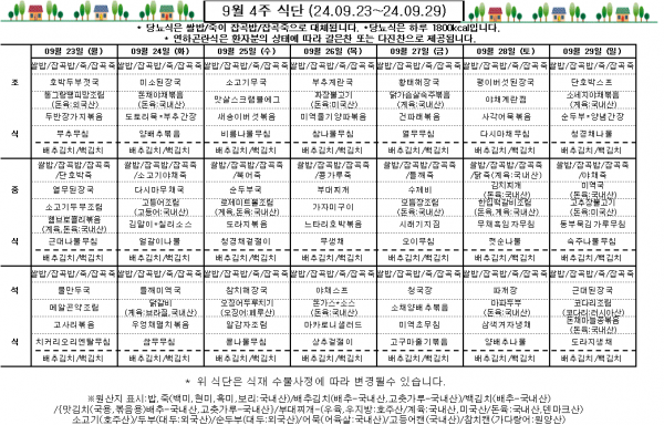 9월 4주 식단표