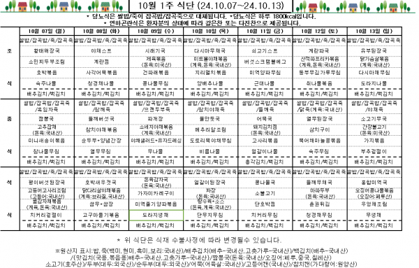 10월 1주 식단표