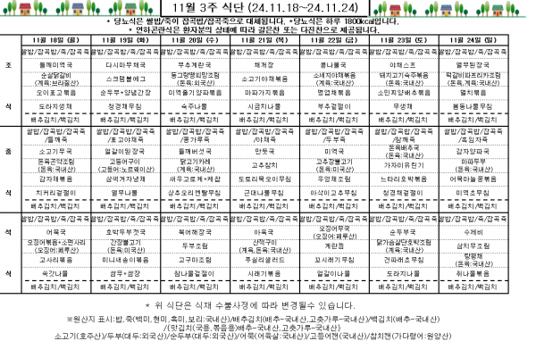 "금주의 식단 메뉴를 확인 할 수 있습니다."