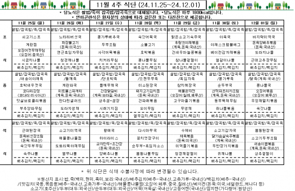 "금주의 식단 메뉴를 확인 할 수 있습니다."