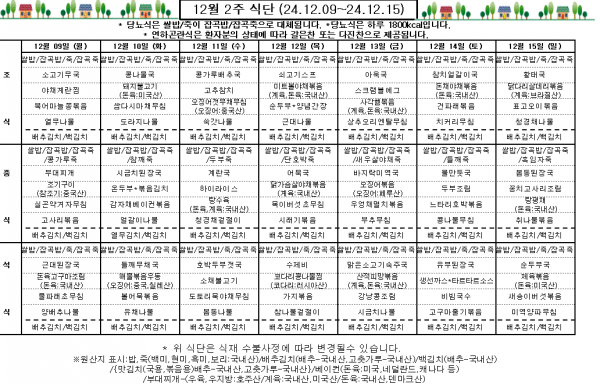 12월 2주 식단표