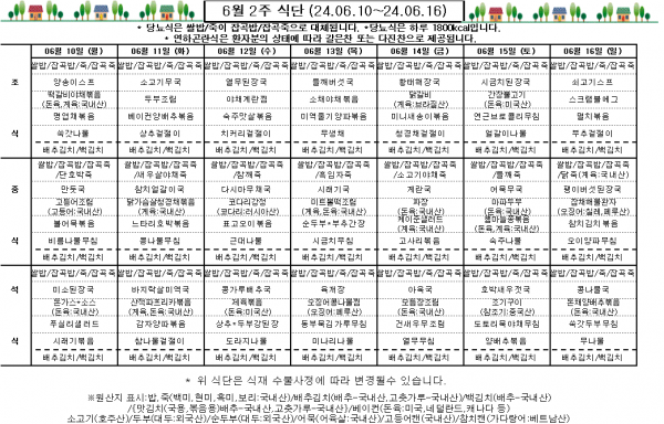 "금주의 식단 메뉴를 확인 할 수 있습니다."