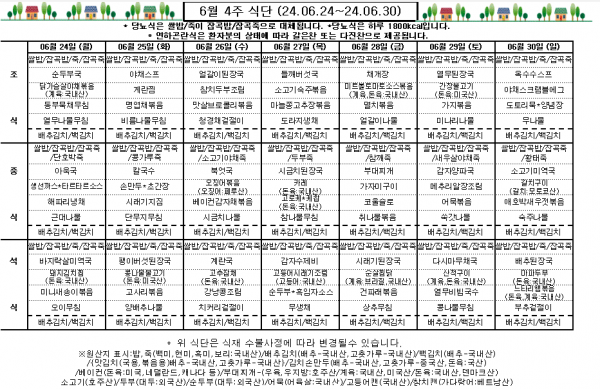 "금주의 식단 메뉴를 확인 할 수 있습니다."
