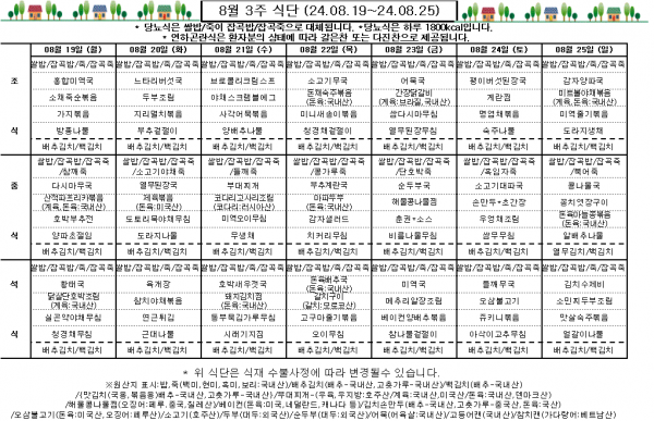 :::인일요양병원- 금주의 식단:::