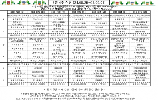 8월 4주 식단표