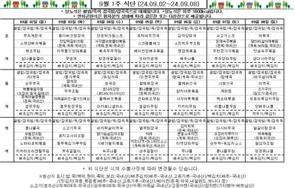 9월 1주 식단표