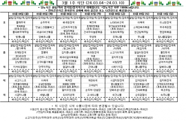 "금주의 식단 메뉴를 확인 할 수 있습니다."