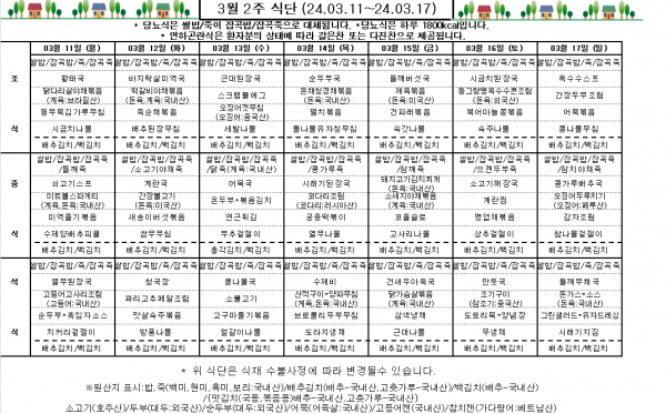 "금주의 식단 메뉴를 확인 할 수 있습니다."